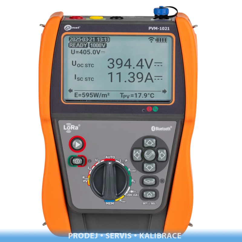 Měřicí přístroj Sonel PVM-1021 je kompaktní měřicí přístroj pro fotovoltaické systémy se značným počtem měřicích funkcí. Funkce se volí otočným přepínačem. Další parametry se nastavují pomocí tlačítek umístěných na krytu. Všechna tlačítka a grafický displej jsou podsvícené, což výrazně usnadňuje práci na zastíněných místech, např. při měření pod fotovoltaickými systémy umístěnými na zemi. Velká paměť výrazně zkracuje přípravu podkladů po měření.